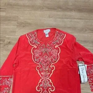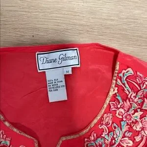 Diane Gilman Red Floral Embroidered Top