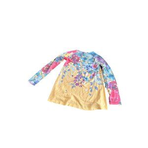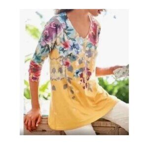 Soft Surroundings Delphina Knit Sweater Tunic Women Size Xs Yellow Multi Floral