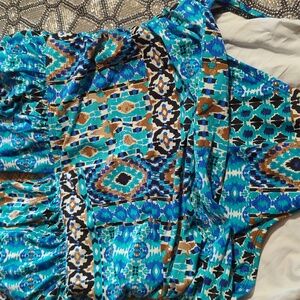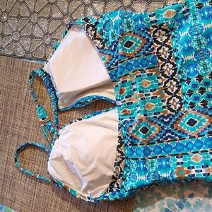 Stylish one-piece swimsuit by La Blanca. Features vibrant blue patterns. Halter neck design with ruched details. Unfortunately this did not fit me. Beautiful.