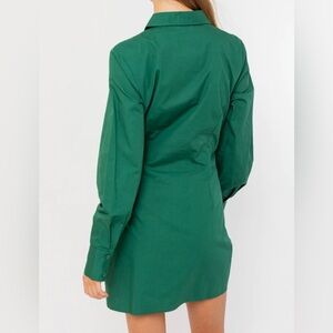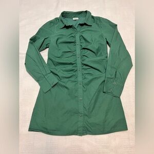 Long Sleeve Collared Shirred Shirt Dress