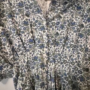 Chic floral dress by Anthropologie. Features a blue and white pattern. Perfect for casual outings.