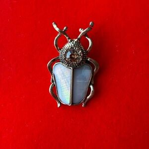 Chic silver brooch with iridescent accents. Adds a unique flair to any ensemble.