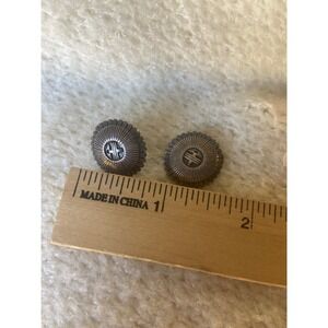 Southwestern-style sterling silver concho stud earrings feature a classic sunburst design with a scalloped edge and a central cross or geometric motif. These oxidized silver studs offer a vintage-inspired aesthetic, perfect for adding a touch of Western flair to any ensemble. The secure post-back closures ensure comfortable all-day wear.