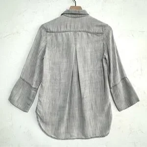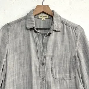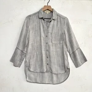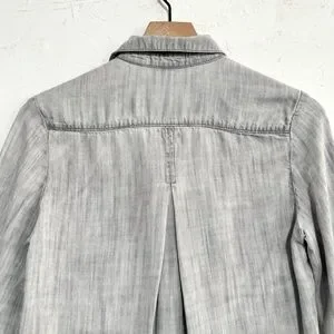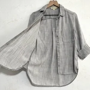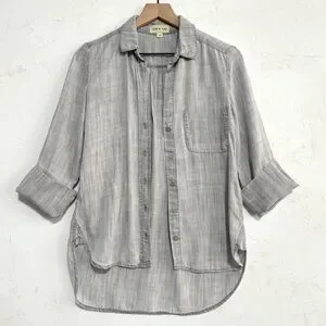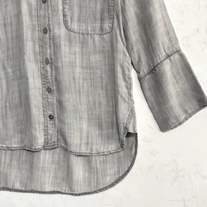 Cloth & Stone Washed Gray Tencel Button-Up Shirt, Hi-Low Hem – XS