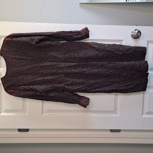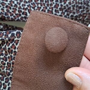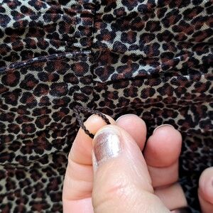 Vintage leopard print dress featuring button front and pockets. Has a belt loop, but no belt. some fraying around the buttons holes.