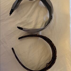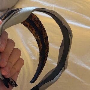 Elegant headbands featuring black lace and gray satin designs. Perfect for adding a stylish touch to any outfit.