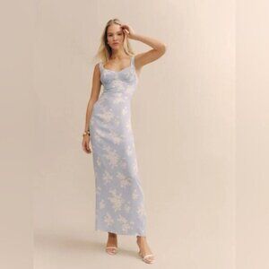 NEW Reformation Reverie Long Dress Bijou Light Blue Floral | US 4 UK 8