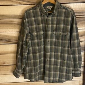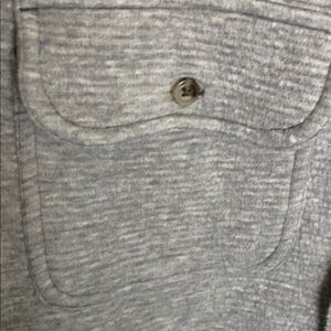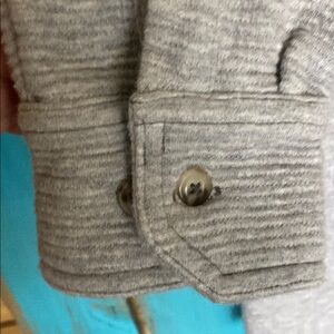 Stylish gray button-up shirt with a classic collar. Perfect for casual or formal occasions. Button flap chest pockets. No holes or stains. Heavier weight shirt. Measures about 20” pit to pit and 27” shoulder to waist.