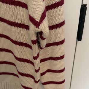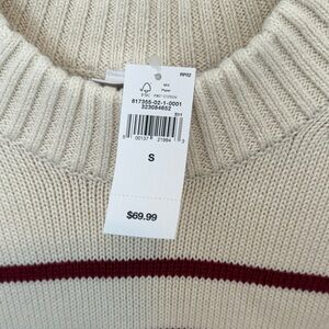 GAP Men's Cream and Red Striped Crewneck Sweater