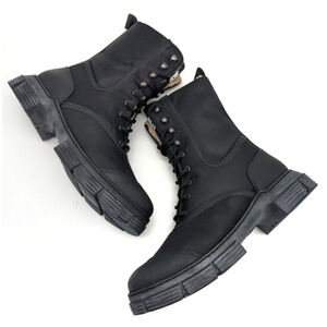 New Ganni shearling combat boots - lug sole lace-up - grunge streetwear - 11