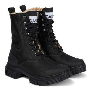 GANNI Shearling Lace-Up Combat Boots: Cozy, stylish, and ready for winter. A perfect blend of comfort and cool.