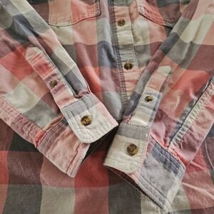 Carhartt Womens Coral Gray Plaid Cotton Button Shirt M 8/10 Western Cowgirl Farm