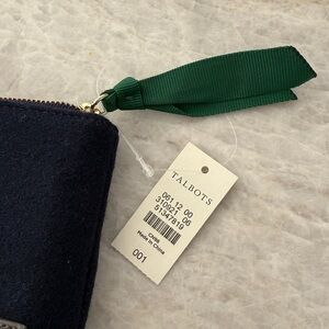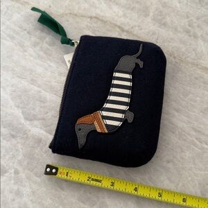 Brand new with tags!! Feels similar to wool and leather but it’s probably not actual wool or leather. Gorgeous navy blue color with brown a dachshund dog wearing a little striped shirt. Perfect gift for a friend! Please see approximate measurements above! Could be used as a wallet, bag organizer, or pouch.