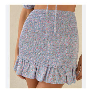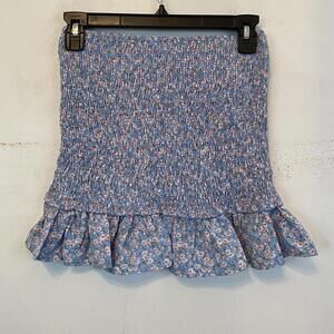 LULUS blue floral shirred mini skirt sz XS