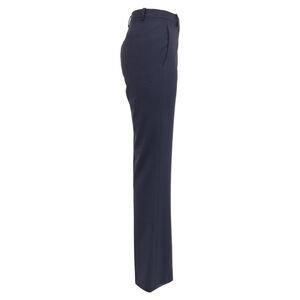 Elevate your wardrobe with Theory High-Rise Tailored Trousers in rich navy blue wool, designed for a sleek, polished silhouette that effortlessly transitions from office to evening. The high-rise cut elongates the legs while the tailored fit ensures a refined, professional look. Styling tip: Pair with a crisp white blouse and pointed heels for a classic ensemble, or tuck in a fitted knit and add loafers for chic, modern layering.
