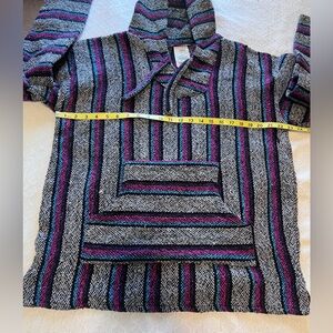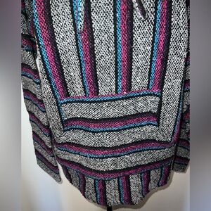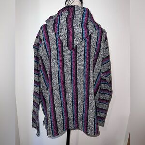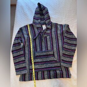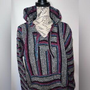 Cozy and classic vintage Baja hoodie by Öland in size XL. Features the traditional Mexican blanket woven texture with a roomy hood, front kangaroo pocket, and relaxed pullover fit.
