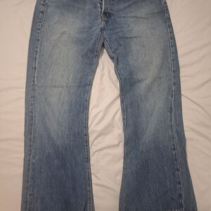 Classic relaxed fit. Light blue denim. Signature leather patch.