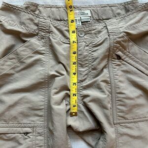 Versatile beige pants. Convertible to shorts. Multiple pockets. Durable fabric. Adjustable waist with button closure. Adjustable tightness of hem. SZ 6. Please confirm measurements approximate laying flat in pictures as Poshmark does not accept returns for fit issues. Please see all ten photos provided.