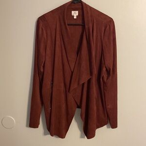 Dressbarn Womans Burgundy Short Jacket Faux Suede Super Soft Zip Pockets Large