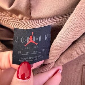Cozy brown hoodie with front pocket. Features iconic Jordan logo. Ideal for everyday wear.