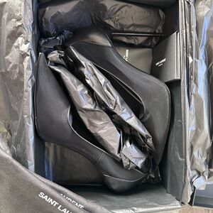 Saint Laurent Anja 105mm Stiletto Heel Pump Mesh and Leather Black EU 38 US 8