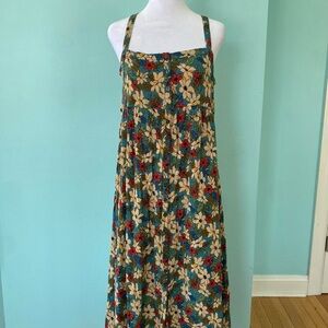 Natural Life Multicolored Floral Boho Earthy Print Dress with Button Front