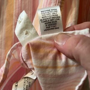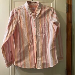 L.L. Bean Women's Pink and Orange Striped Button-Down Shirt