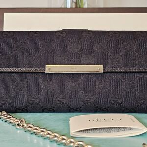 Comes with aftermarket silver shoulder chain and Gucci box with Gucci papers as shown.