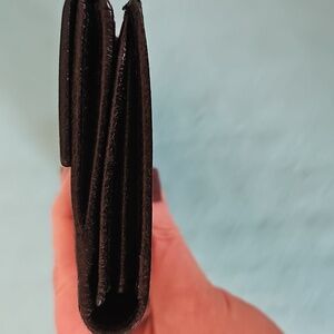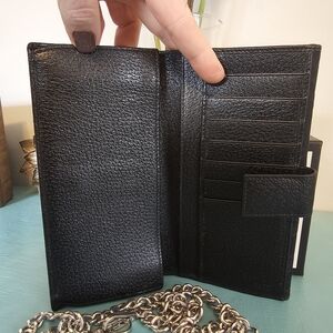 Style: Bifold long flap wallet, often referred to as a "Continental" style.