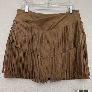 Halara crossover high waisted 2-in-1 fringe hem bodycon mini skirt in the color mocha women's size large NWT.