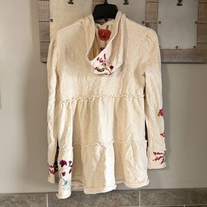 Johnny Was Ivory Zip Up Hooded Sweatshirt with Embroidered Floral design XS