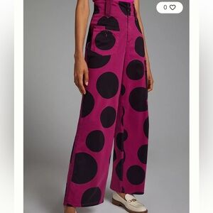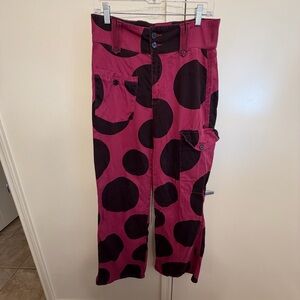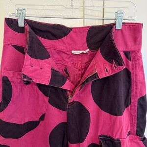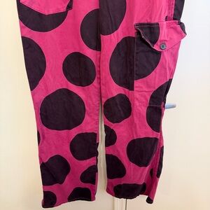 Avec Les Filles Pink and Black Polka Dot Wide-Leg Cargo Pants High Rise Medium