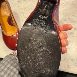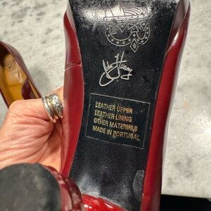 Chic deep red burgundy heels by John Fluevog. Sleek design with a classic touch. Spectacular heel!