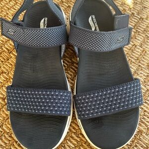 Women’s Skechers Arch-Fit Ultra Go Sandals in Blue and White Sz 9