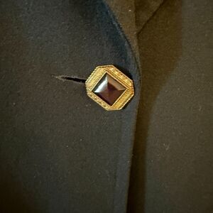 * Features: Single statement button, two side slit pockets, fully lined, back vent/pleat for movement, shoulder pads