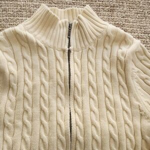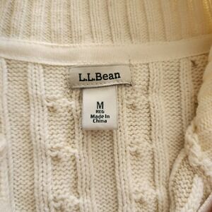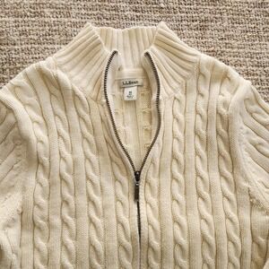L.L.Bean Women's Beige Cable-Knit Sweater Full Zip Mock Neck Long Sleeve M