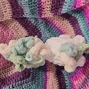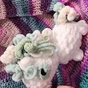 Handmade by me via crochet. The hair can be adjusted to your liking, which makes it a fun interactive pony.