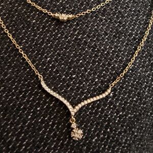 Not sure of material nor stones but definitely not gold ( it was a gift)