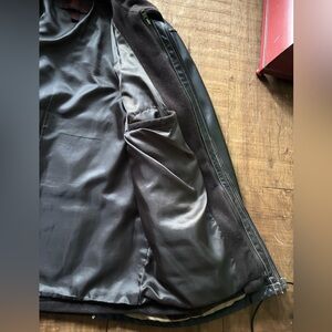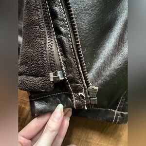 Vintage Danier genuine leather jacket in amazing condition. Slight wear can be seen in select photos (some discoloration/scuffing), however very minimal and hardly noticeable. The wear is mostly on the bottom of the jacket near the zipper as shown. Overall an awesome jacket with nice lining, leather is freshly waxed and lining washed. Fleece also included, basically a whole other jacket that can be taken out to wear, or kept in to add warmth and that fleece lined look.