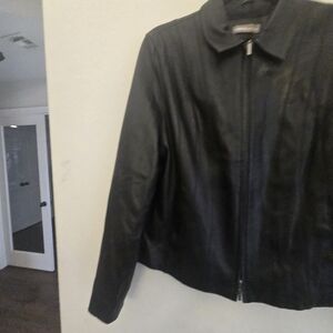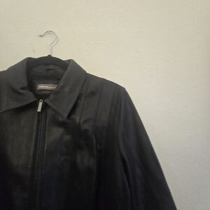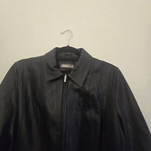 Elevate your style with this classic black leather jacket. Perfect for any occasion, this jacket offers both comfort and sophistication.