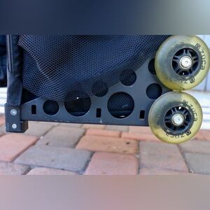 Designed for professional makeup and hair artists on the go. Double wheels, very very smooth. Designed to also be a chair for on location touch ups.