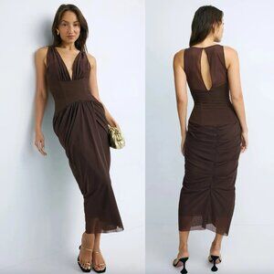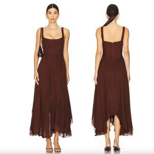 Understated Leather Honey Moon Maxi Dress Chocolate Brown Corset Bustier Small