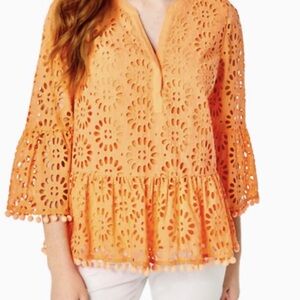 Gorgeous Lilly Pulitzer Bekah Top Cantaloupe Pinwheel Eyelet.
