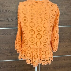 Brighten your wardrobe with this stylish orange eyelet top. Perfect for any occasion, this top features intricate detailing and a comfortable fit.