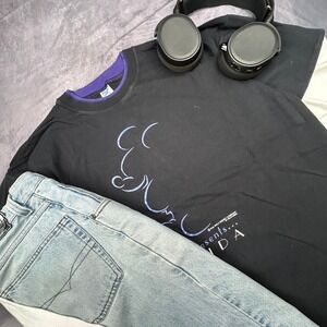 Vintage 90s Velva Sheen Mickey Florida T-Shirt XL Black Purple Double Layer Y2K