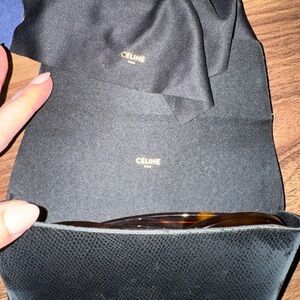 Stylish Celine sunglasses in dark brown. Comes with a sleek case. Perfect for a chic look.