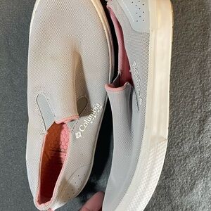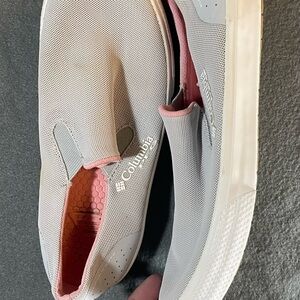 Comfortable Columbia slip-ons. Gray body with pink interior. Easy to wear.