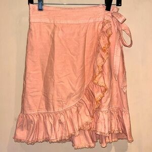 Anthropologie peach viscose combo wrap tiered flare skirt size medium w/pockets