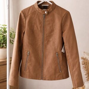 NWT a.n.a Camel Vegan Leather Moto Jacket M