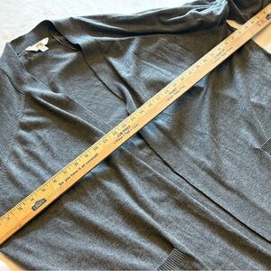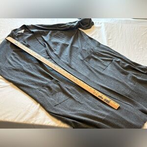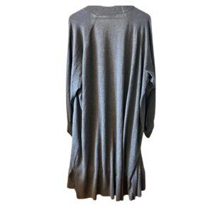 Terra & Sky charcoal long open front cardigan in size 3X (24W–26W). Extra-long cozy silhouette perfect for layering, lounge wear, or casual outfits. Soft knit blend with relaxed drape and side pockets. Great fall and winter layering piece.